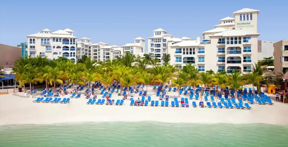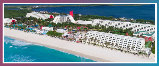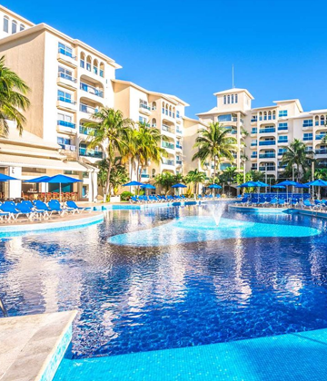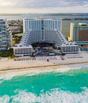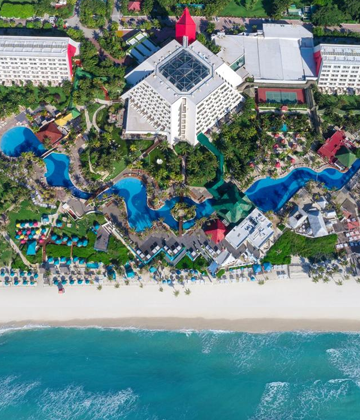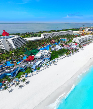 En la playa al borde del mar Caribe en Cancún, este hotel todo incluido ofrece una variedad de actividades, opciones gastronómicas y acceso a las atracciones del área.